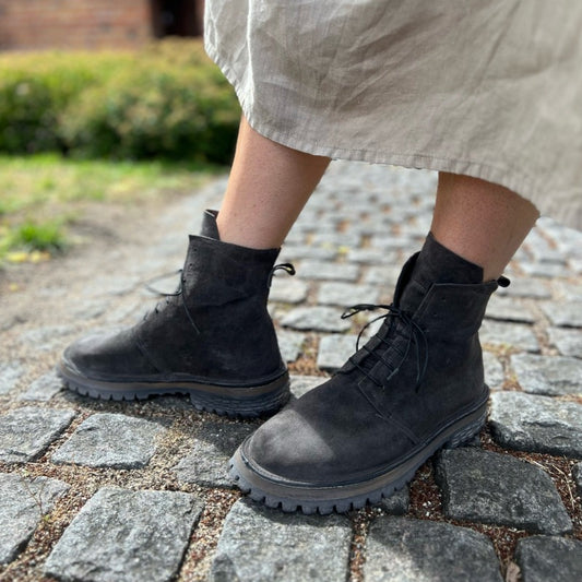 MOMA Dame Støvle m/snøre og lynlås Ebano
