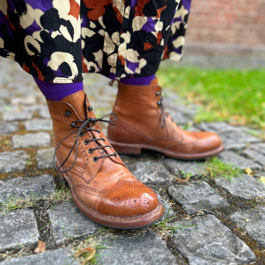 MOMA Dame Støvle m/brokade stikninger Cognac