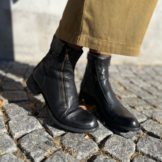 New Feet Støvle m/snøre og lynlås Glat Skind Sort