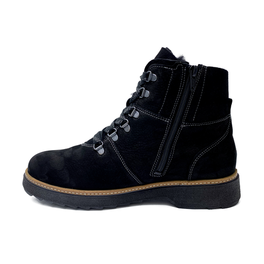 Waldläufer Støvle Dame m/snøre og lynlås og foer Sort