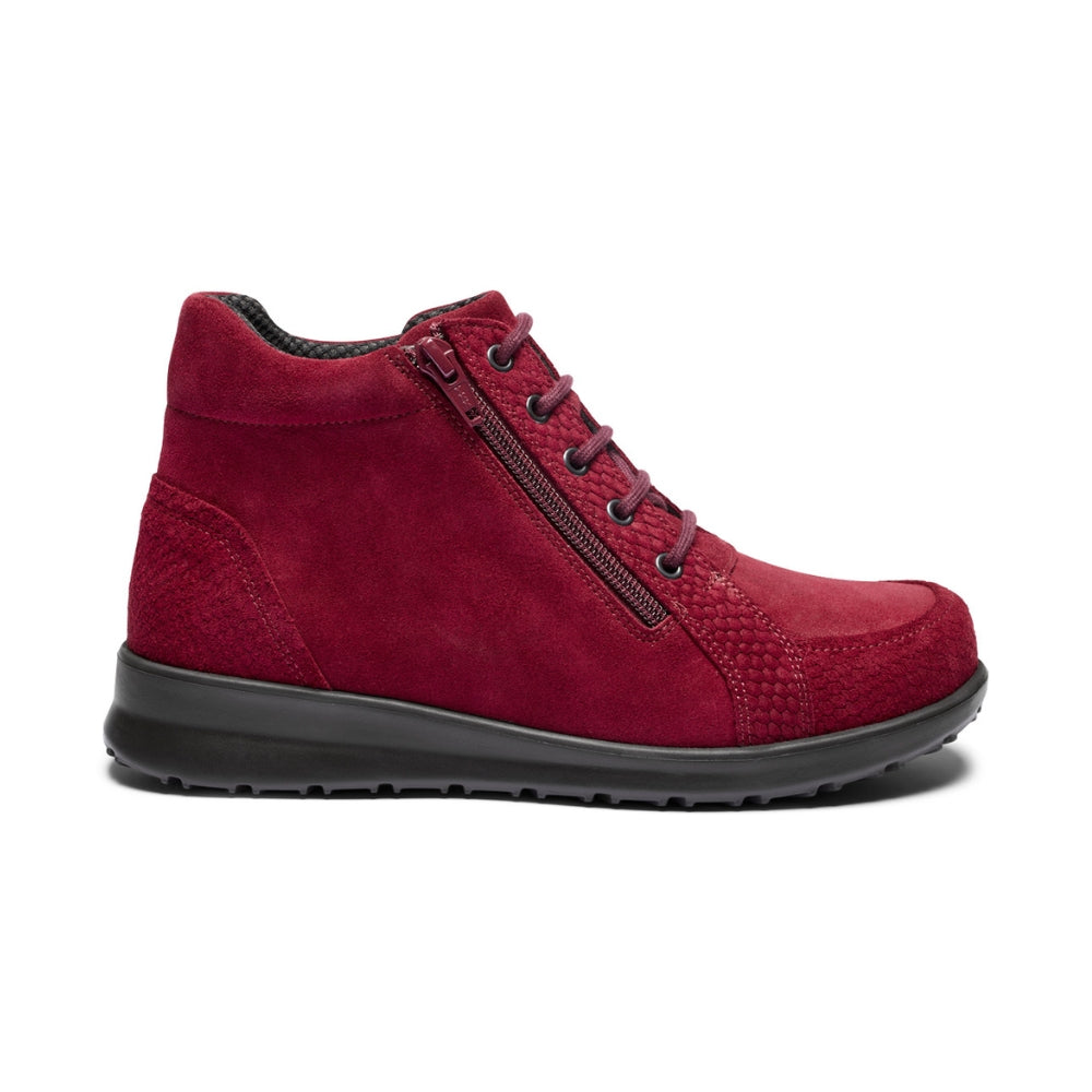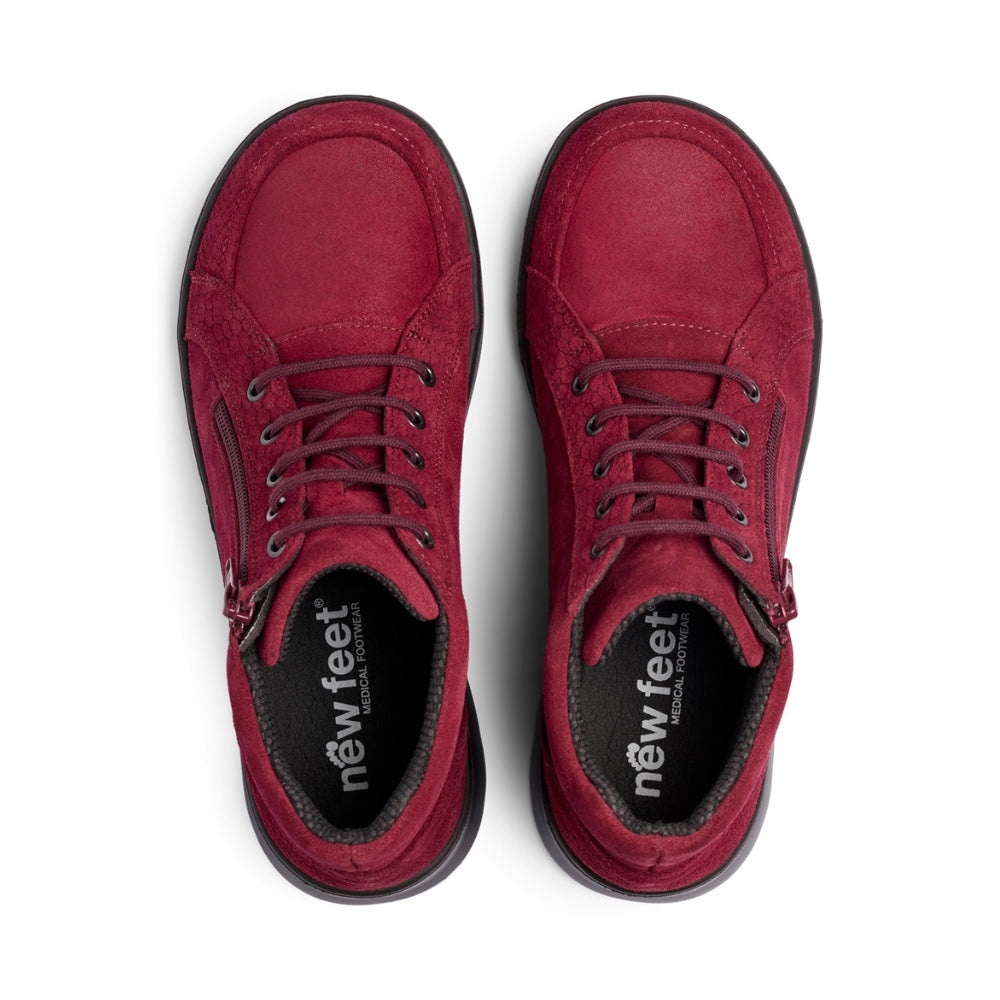 New Feet Støvle m/ Snøre og lynlås Wine Nubuk