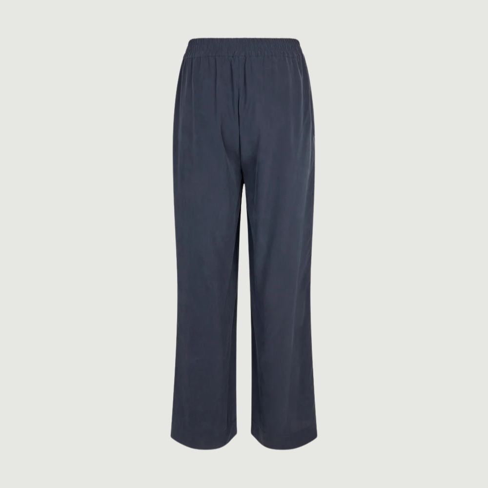 Lottie er et par elegante bukser med lige, flydende pasform i 100 % spundet silke. Bukserne har elastisk talje og praktiske sidelommer, som giver en afslappet komfort uden at gå på kompromis med det sofistikerede udtryk.