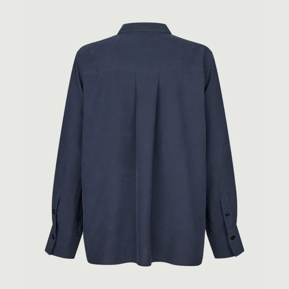 Ally er en skjorte med afslappet pasform i 100 % spundet silke, som giver et elegant og let udtryk. Skjorten har blanke knapper foran og ved manchetterne samt en diskret læg i ryggen, der skaber smuk bevægelse og ekstra komfort.