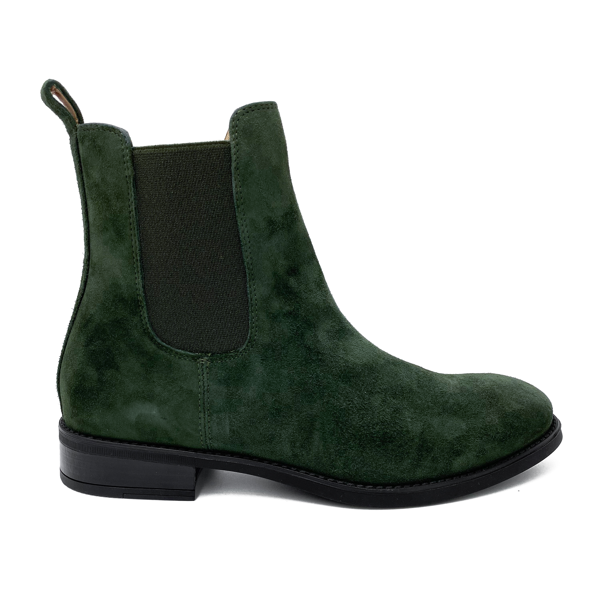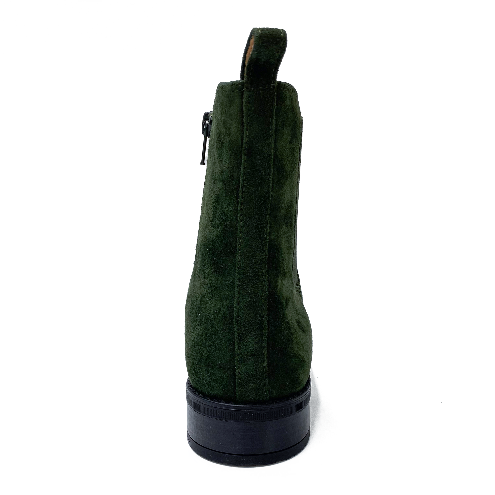 Unisa Chelseastøvle i suede grøn med lynlås.